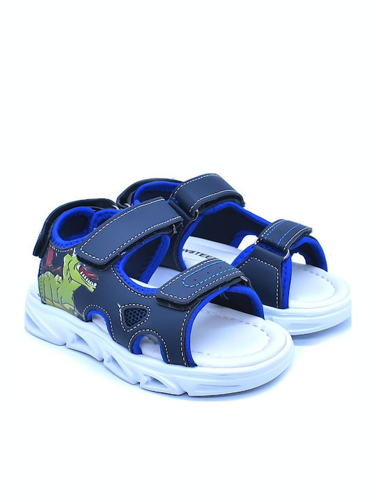 Ετοιμαστείτε για περιπέτειες στην προϊστορική εποχή με τα μπλε παιδικά πέδιλα που θα λατρέψει κάθε μικρός φίλος των δεινοσαύρων. Ο σχεδιασμός τους συνδυάζει το βαθύ navy μπλε με έντονες σπορ λεπτομέρειες και μια εντυπωσιακή παράσταση δεινοσαύρου δίπλα σε ένα ηφαίστειο.