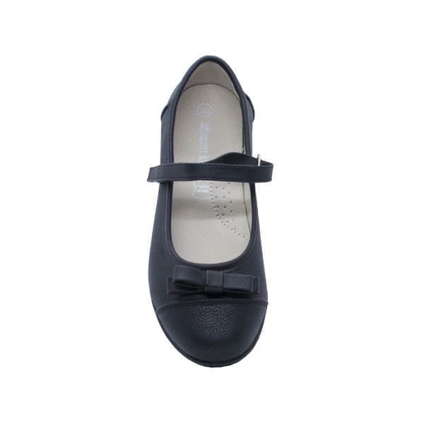 Παιδικές μπαλαρίνες της ελληνικής εταιρείας SmartKids, σε μαύρο χρώμα με δερμάτινο πάτο. Κατασκευασμένη από οικολογικό δέρμα εξωτερικά και με αυτοκόλλητο για σταθερότητα. Αντιολισθητική εύκαμπτη σόλα.